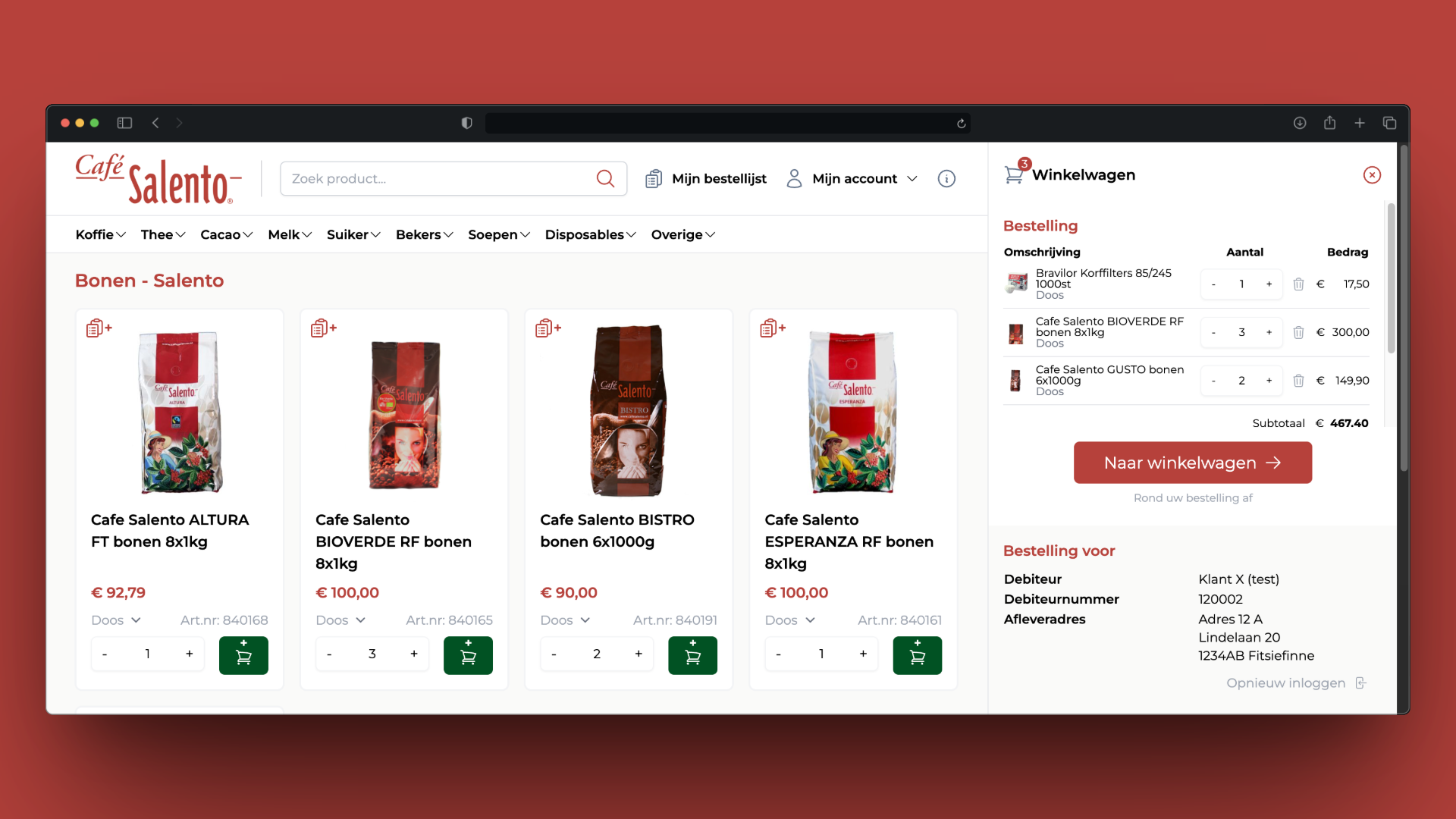 Maatwerk B2B bestelportaal, gekoppeld met KING Boekhoudsoftware voor debiteuren, verzendadressen, prijsafspraken en artikelen. En terugkoppeling van bestellingen.