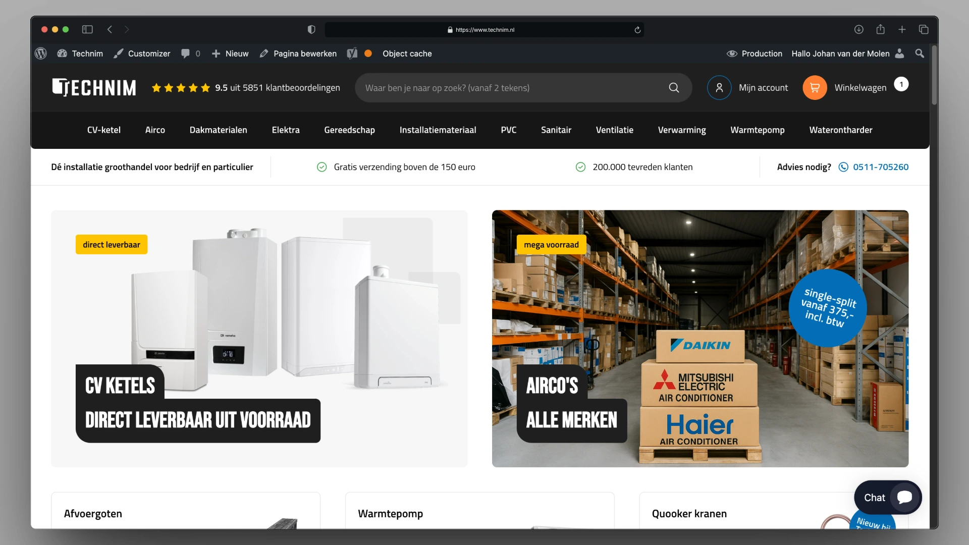De installatie groothandel van Nederland. Gekoppeld met Algolia voor razendsnelle zoekresultaten. En een naadloze integratie met een op maat ontwikkelt PIM en kassa systeem.